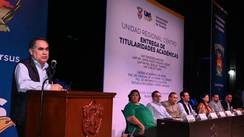 Dando cumplimiento al compromiso establecido por el Rector de la Universidad Autónoma de Sinaloa (UAS) al inicio de su gestión y, en un acto de justicia laboral, 325 docentes de ocho unidades académicas del nivel medio superior y superior de la Unidad Regional Centro (URC) recibieron de manos de las autoridades de la institución su Titularidad Académica.